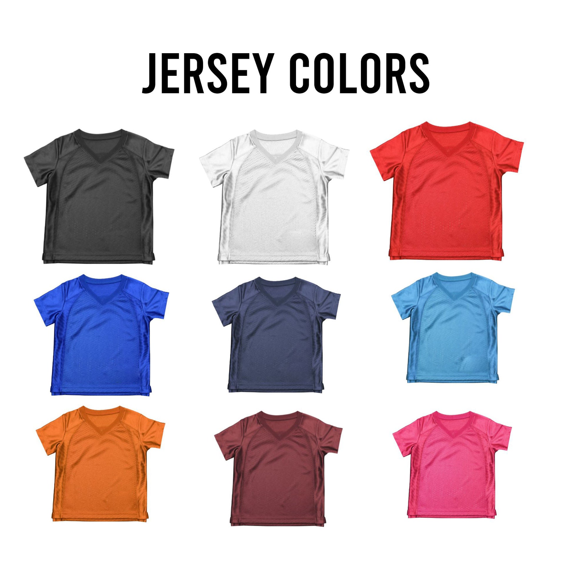 *please note jerseys will sometimes have branded patch on bottom left of jersey and will be slightly different in colors from toddler-adult sizing. colors may vary in orders with multiple jerseys depending on what's in stock.