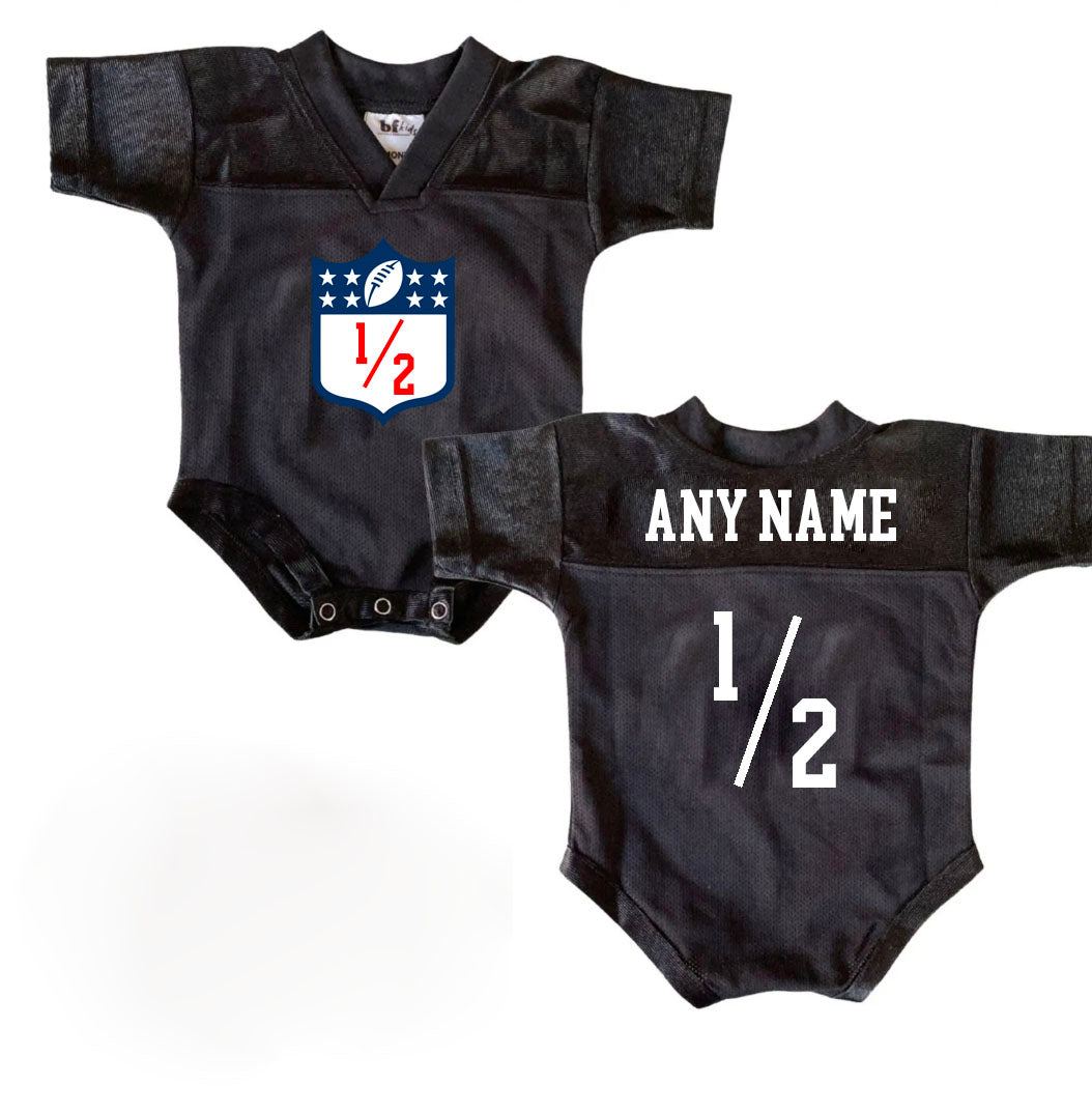 Custom Half Birthday 6 Month Football Baby Bodysuit Onesie Jersey